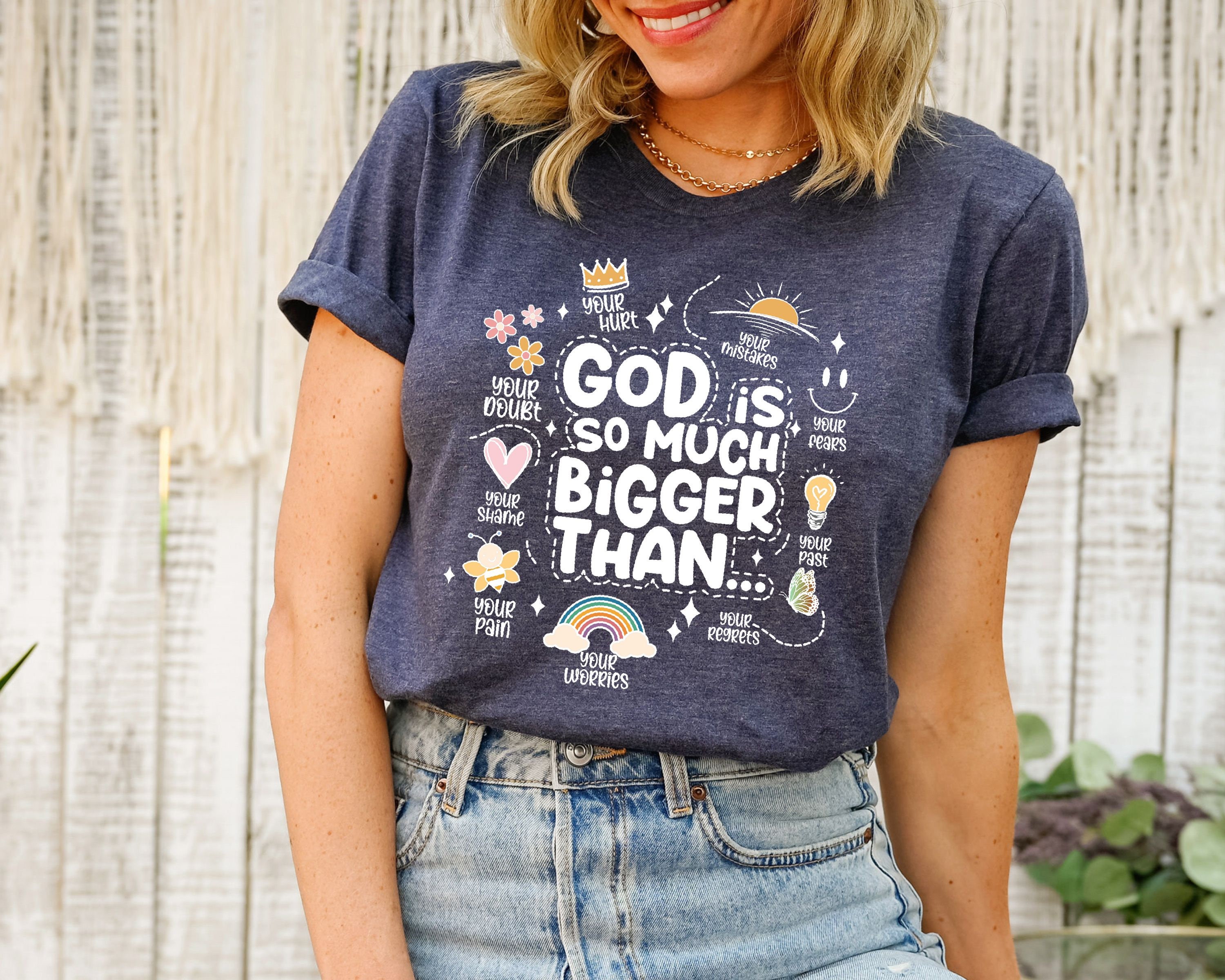 Keywords: God is Bigger Than Shirt, Retro Christian Tshirt, Bible Affirmations Shirt, Dear Person tshirt, Jesus Tshirt Gift, Commercial Use, Matching Shirt