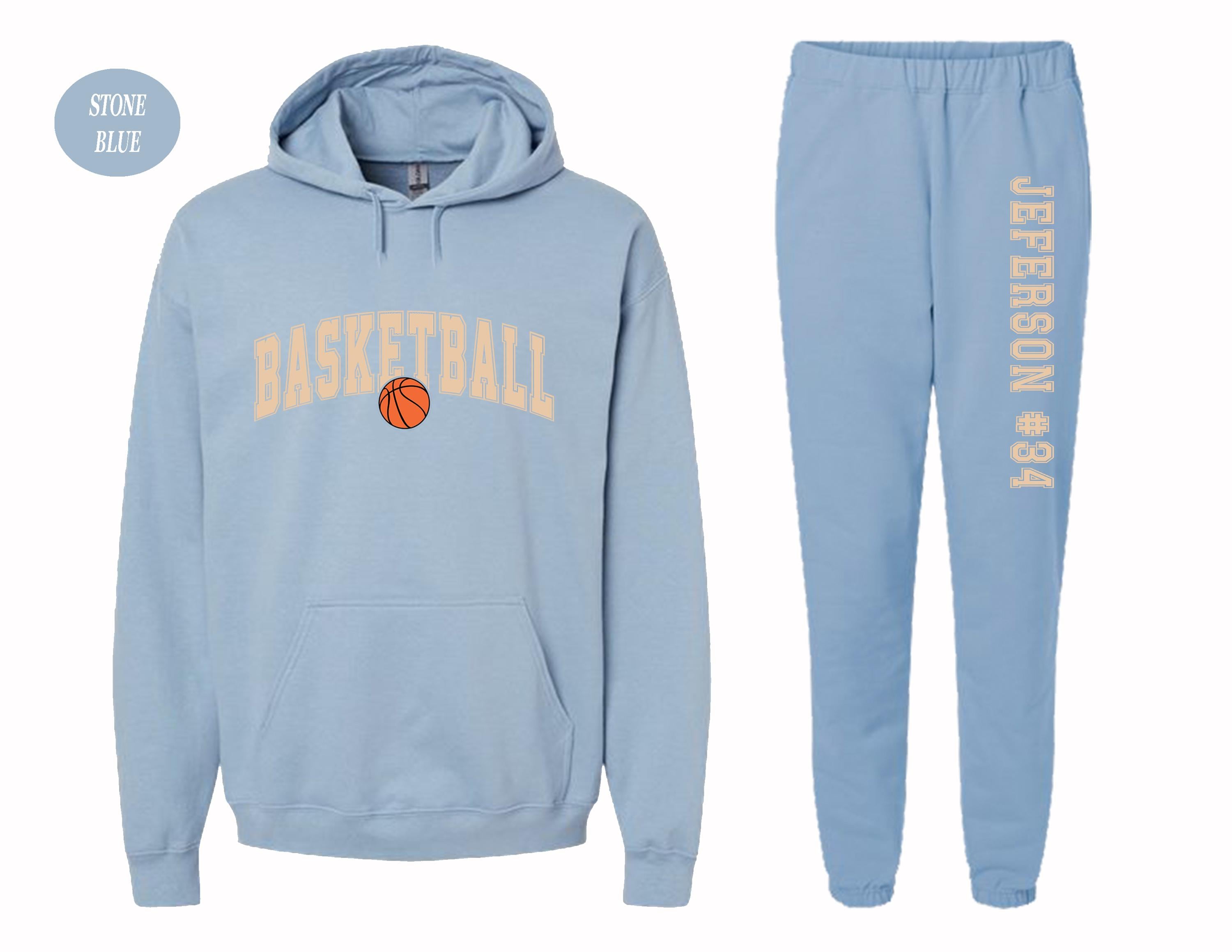 Hit the court or lounge in style with our Gildan basketball hoodie and sweatpants set – perfect for players, fans, and team spirit wear!