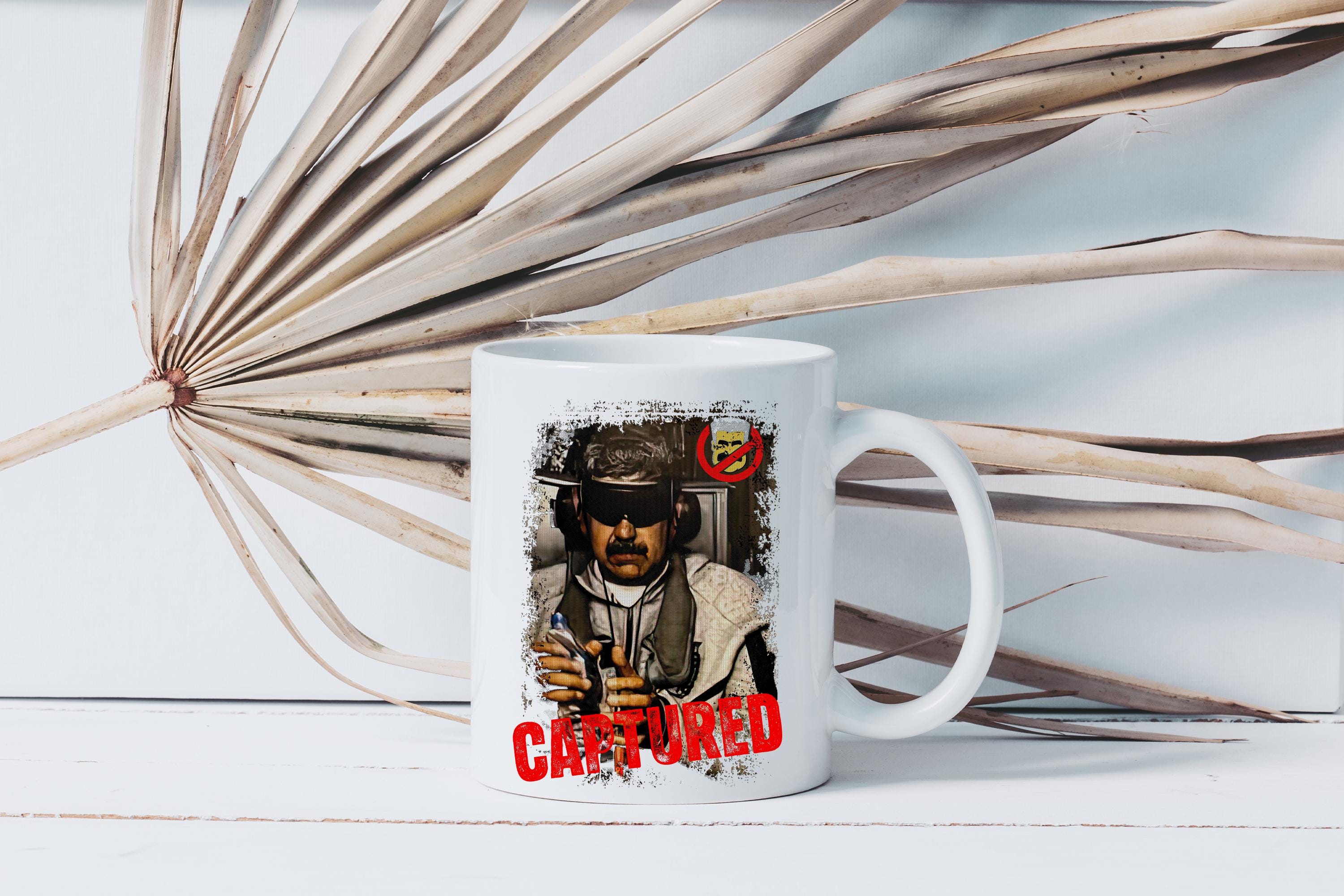 Make a bold statement with this Maduro Captured – Venezuela Free Mug, designed for those who support freedom, justice, and the future of Venezuela 🇻🇪. This eye-catching mug is perfect for your morning coffee or tea while proudly expressing your stance and solidarity with the Venezuelan people.