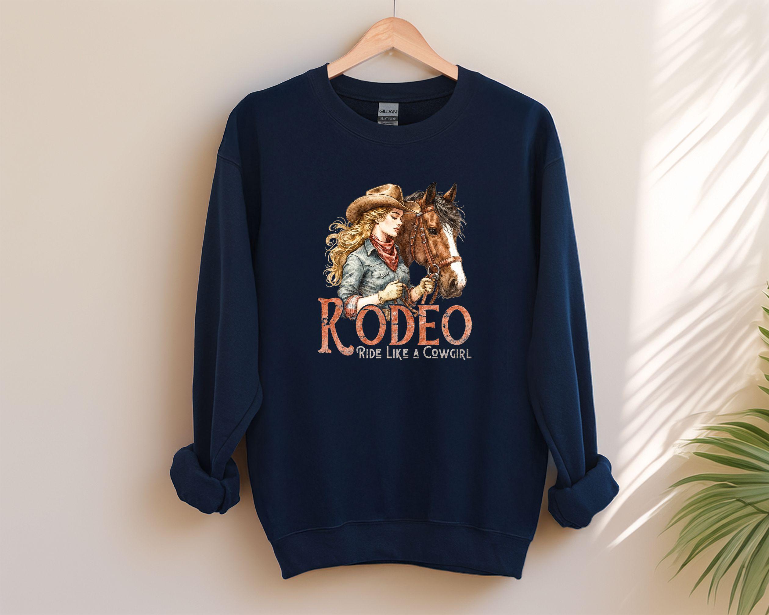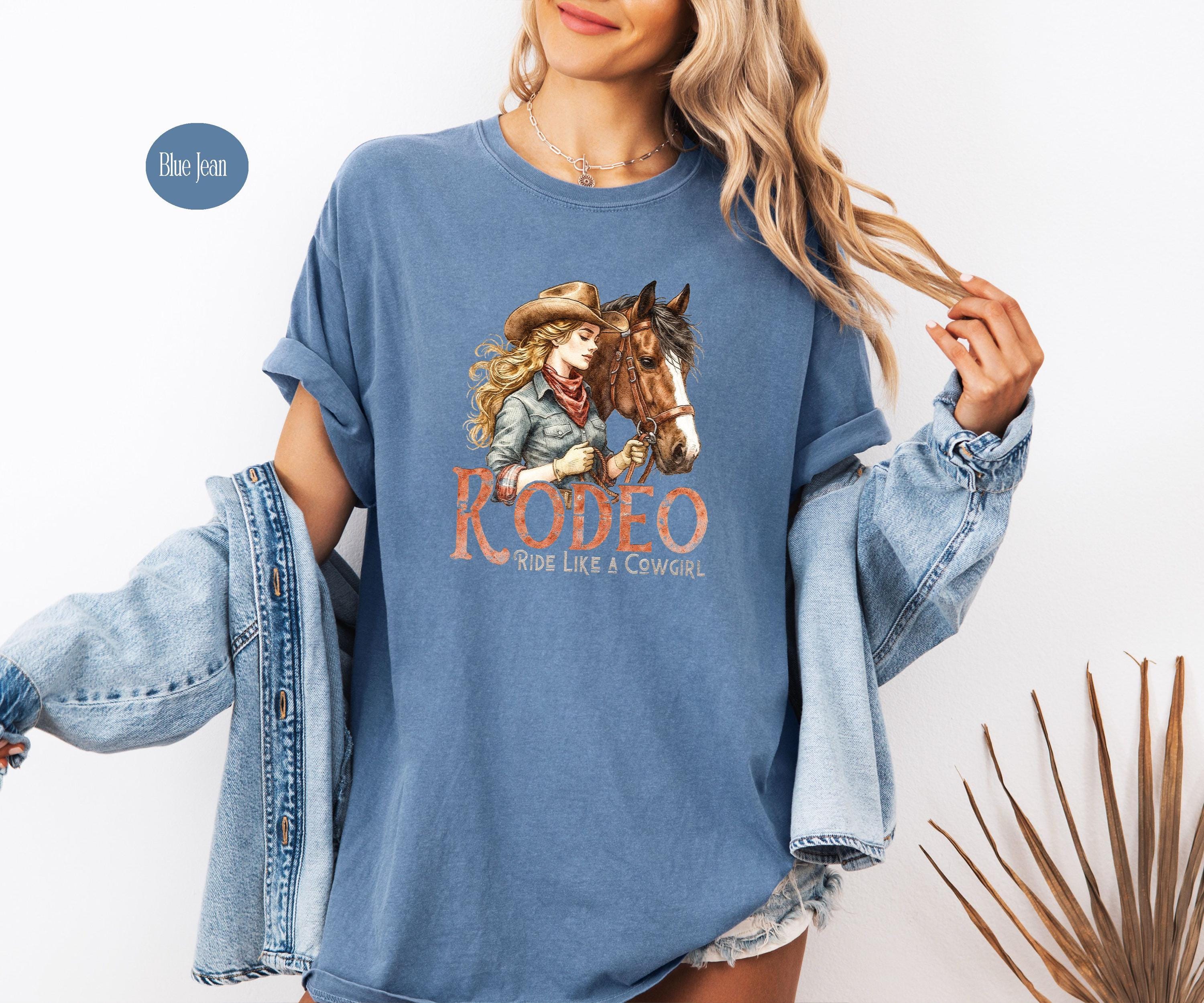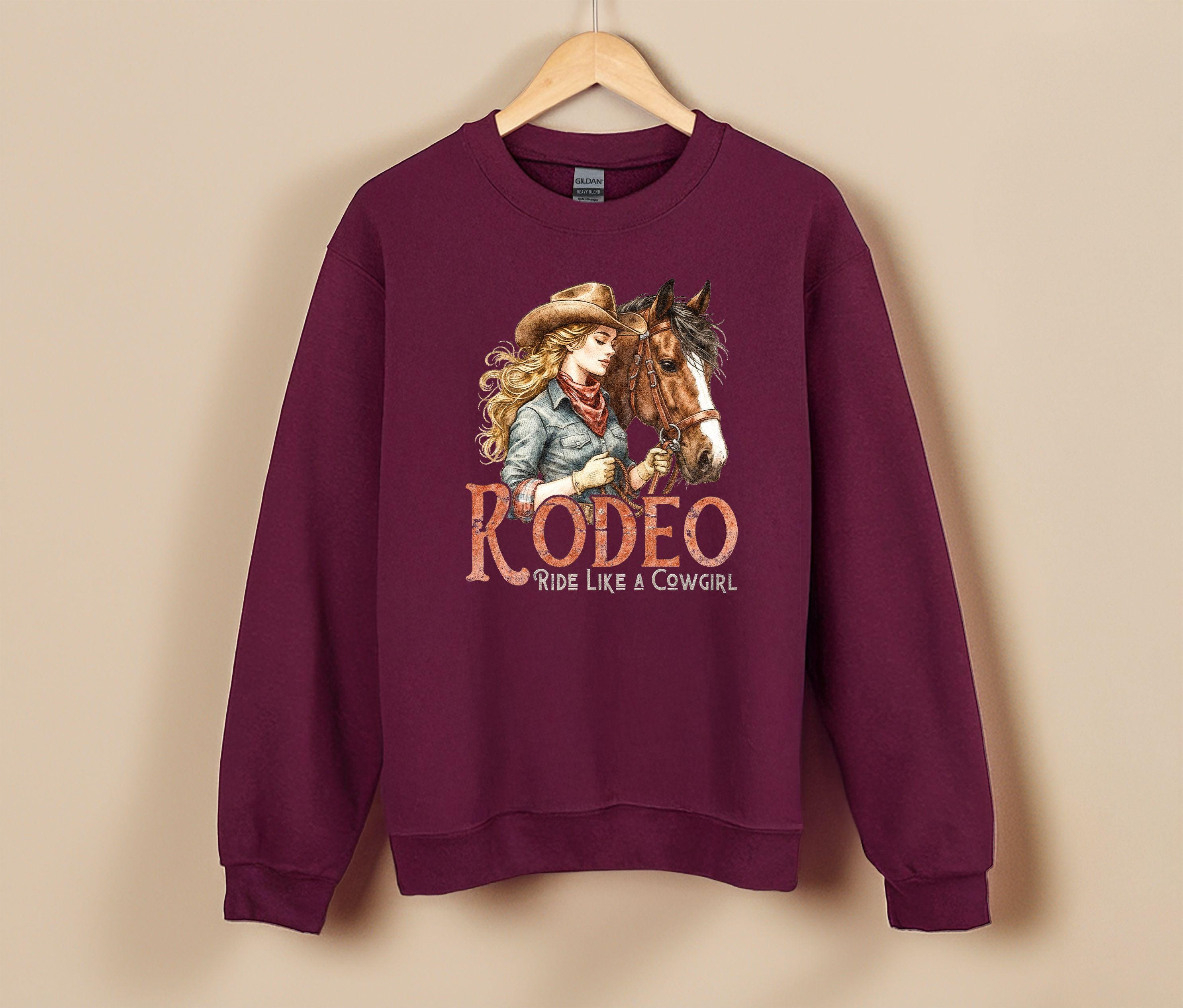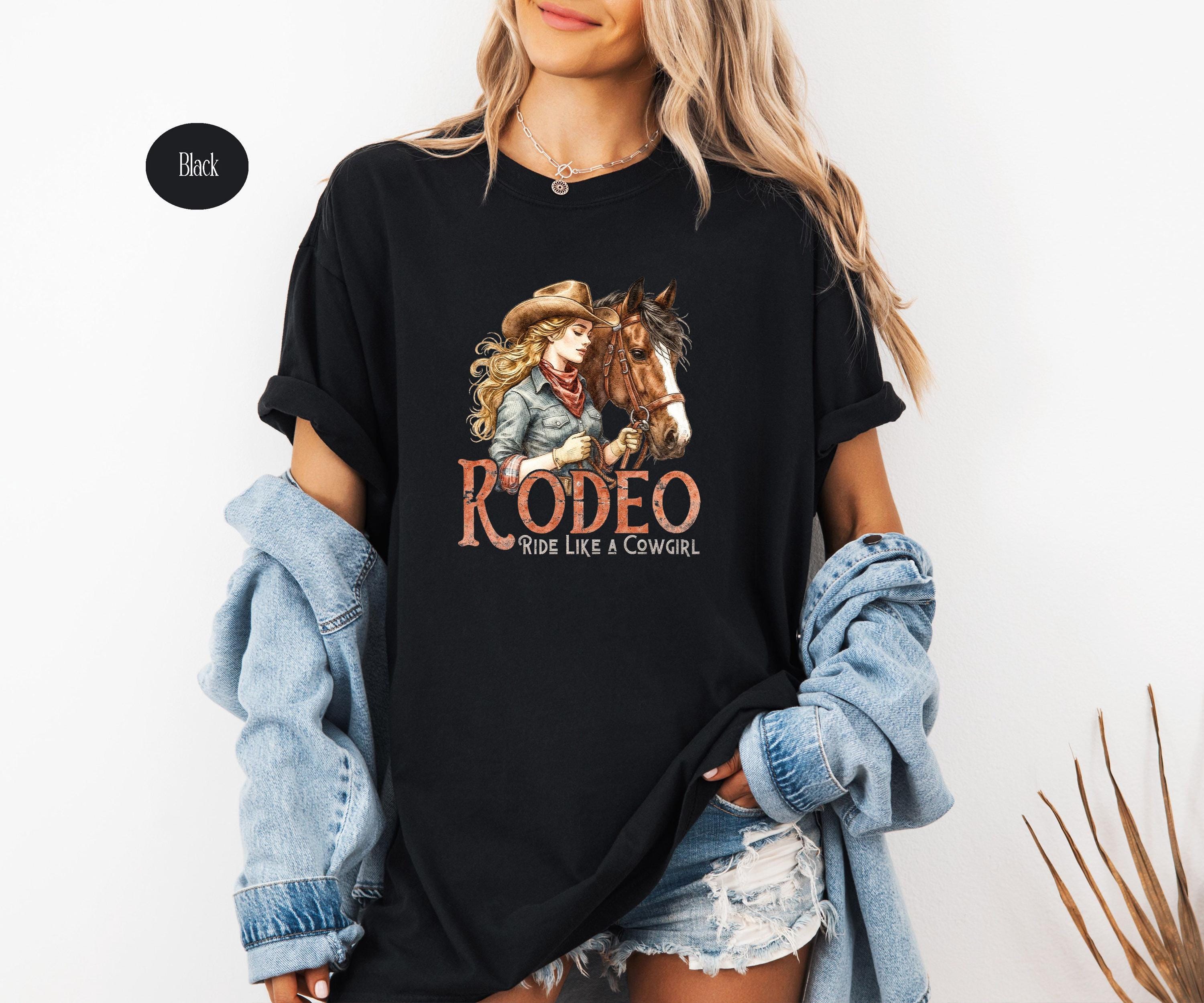 Channel your inner spirit of the west with our "Rodeo: Ride Like A Cowgirl" apparel. Featuring a beautifully detailed vintage-style illustration of a cowgirl and her horse, this design is perfect for horse lovers, rodeo fans, and anyone who lives for the country lifestyle. Whether you're heading to the ranch or just love the western aesthetic, this graphic is a timeless addition to your wardrobe.