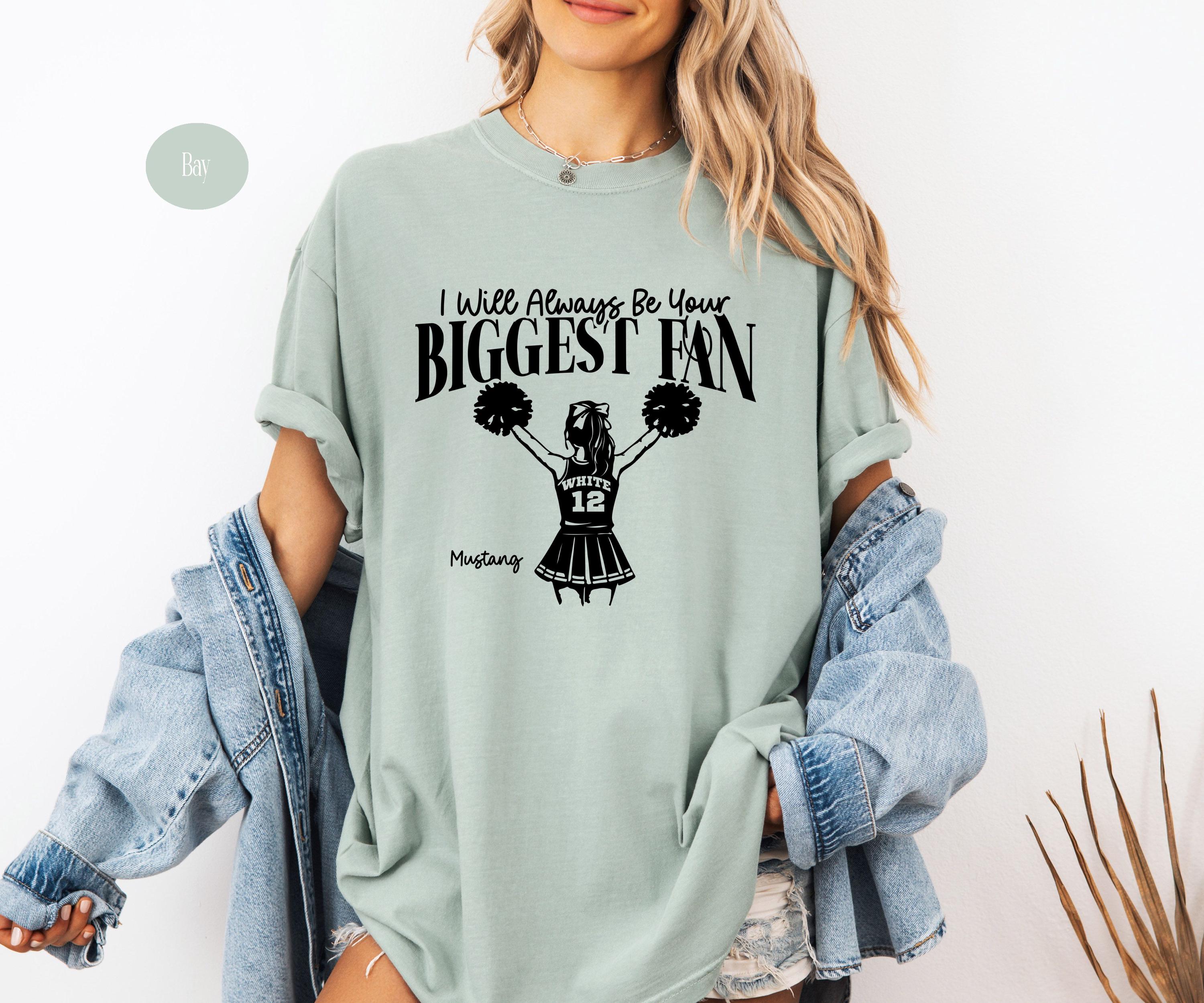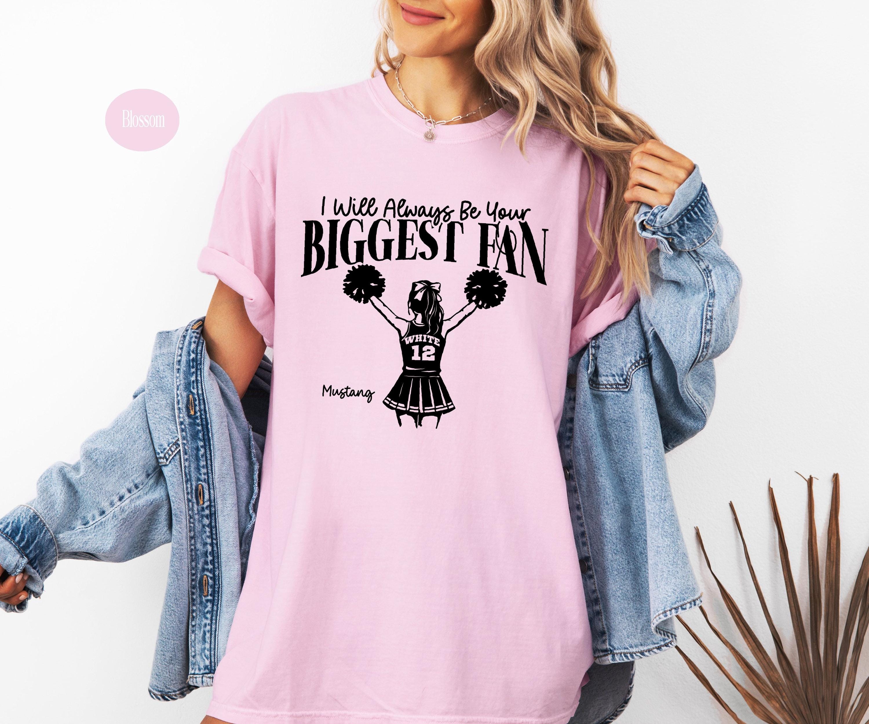 Show your pride and support in style with our “I Will Always Be Your Biggest Fan” Cheer Mom Shirt 🤍